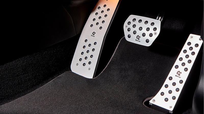 En los laterales encontramos unos rines cromados 3DDesign Type 3 de aleación de 20”. Y en frente un splitter también de fibra de carbono. Por dentro las modificaciones son mínimas como la incorporación de nuevas paletas de cambio y pedales.