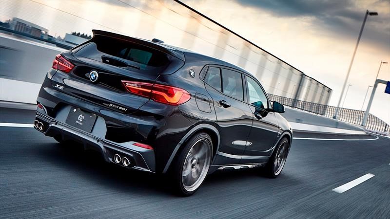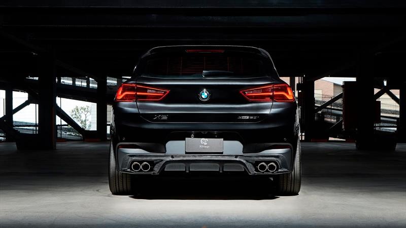 Para el X2, 3DDesign fabricó una serie de piezas de fibra de carbono entre ellos un difusor trasero, que le da un toque único y realmente agresivo. Asimismo, encontramos un alerón de buen tamaño en la parte superior que sobresale por encima del medallón y salidas de escape cuádruples, todo en conjunto le da una apariencia singular al BMW X2 y sin temor a equivocarnos visto de tres cuadros se convierte en nuestra parte preferida.