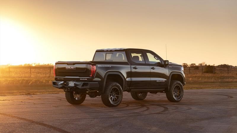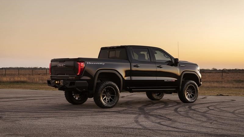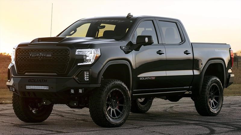 Además de elevar la potencia del motor, este Goliath 700 GMC Sierra Denali de Hennessey Performance Engineering mejora sus capacidades off-road por medio de un kit de elevación de seis pulgadas, neumáticos todoterreno de 35 pulgadas y rines de 20 pulgadas.