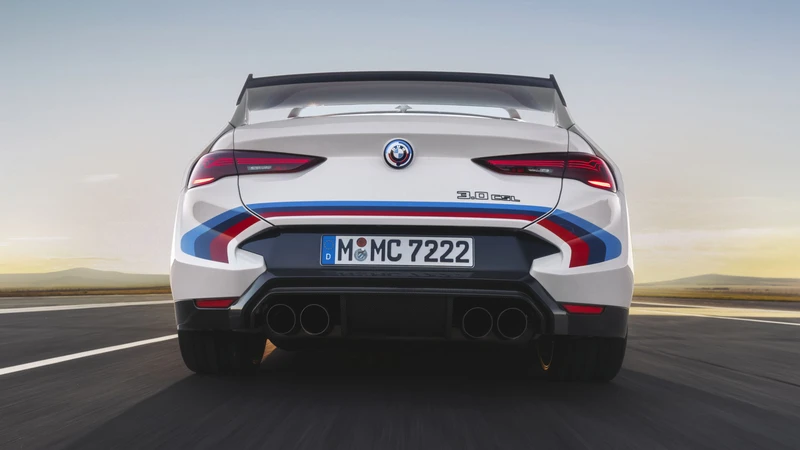 Como pasaba en el modelo original, la característica más llamativa del diseño es el gran alerón trasero y el alerón adicional montado en el techo. Además, también se hace presente la hermosa gráfica de carreras con gráficos BMW M en color blanco alpino, del que la marca comenta que requiere un proceso de pintura especial que agrega 6,700 horas de trabajo manual adicionales en producción.